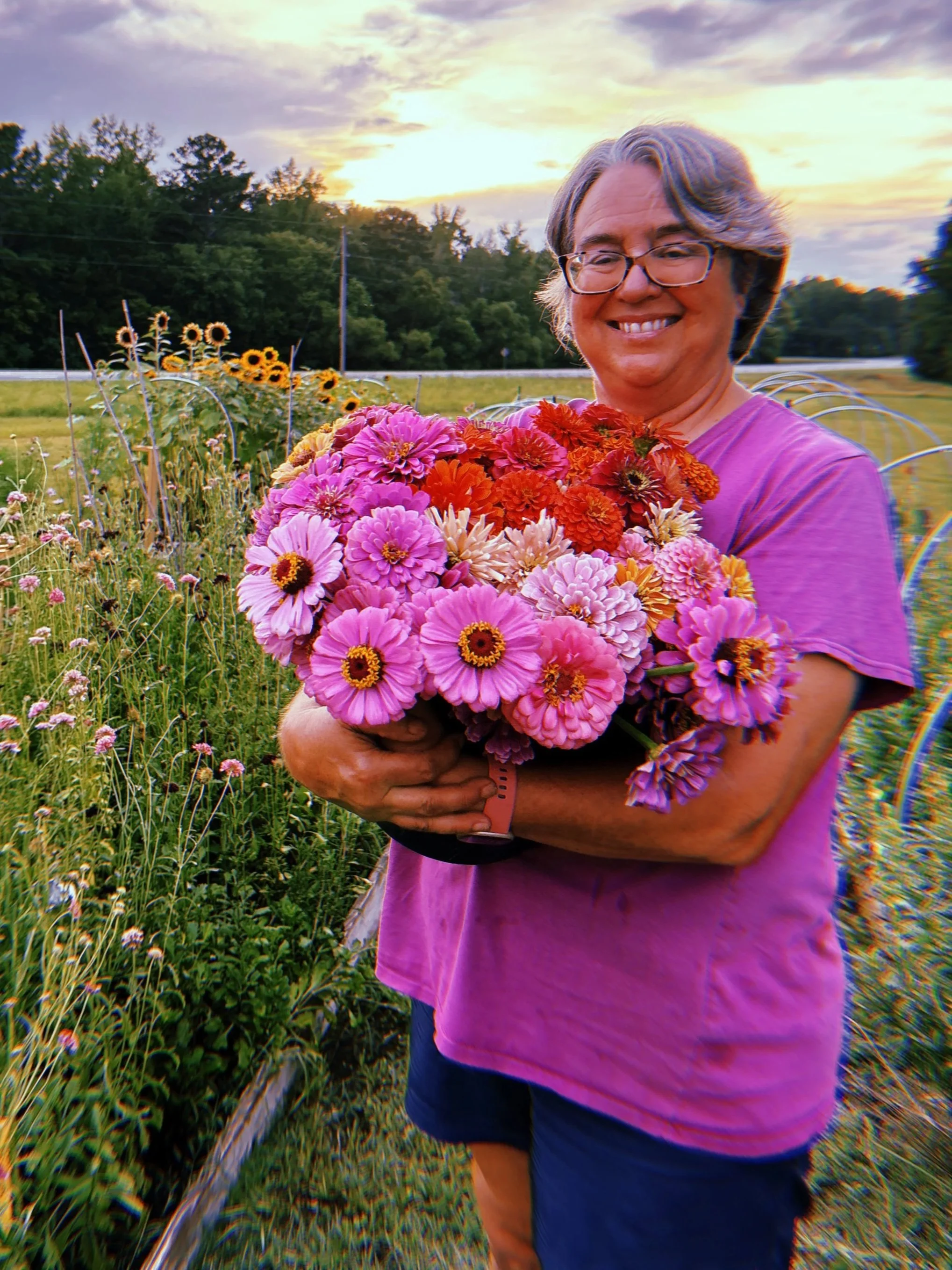 We are a family-owned flower farm in Cochran, Georgia. We grow sustainably using no-dig methods and organic principles. While we are not certified organic, we use organic products to help us care for the flowers. We want to create healthy growing conditions for our flowers and our families. Ultimately, our goal is to spread joy through our flowers!